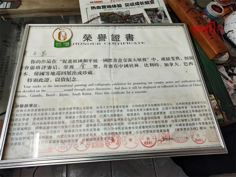 1985年,黄正家对绘画的热爱从未消减。他报名参加柳州函授大学美术班,系统学习国画理论与技法。三年间,他勤学不辍,1988年毕业时,其作品已展现出扎实的功底。此后数十年,他从未停笔,花鸟、山水作品多次登上专业刊物并荣获众多荣誉,曾在“促进祖国和平统一国际书画交流大展赛”中荣获金奖,那块中英文对照的获奖证书至今仍端放在他家书桌最显眼的位置。