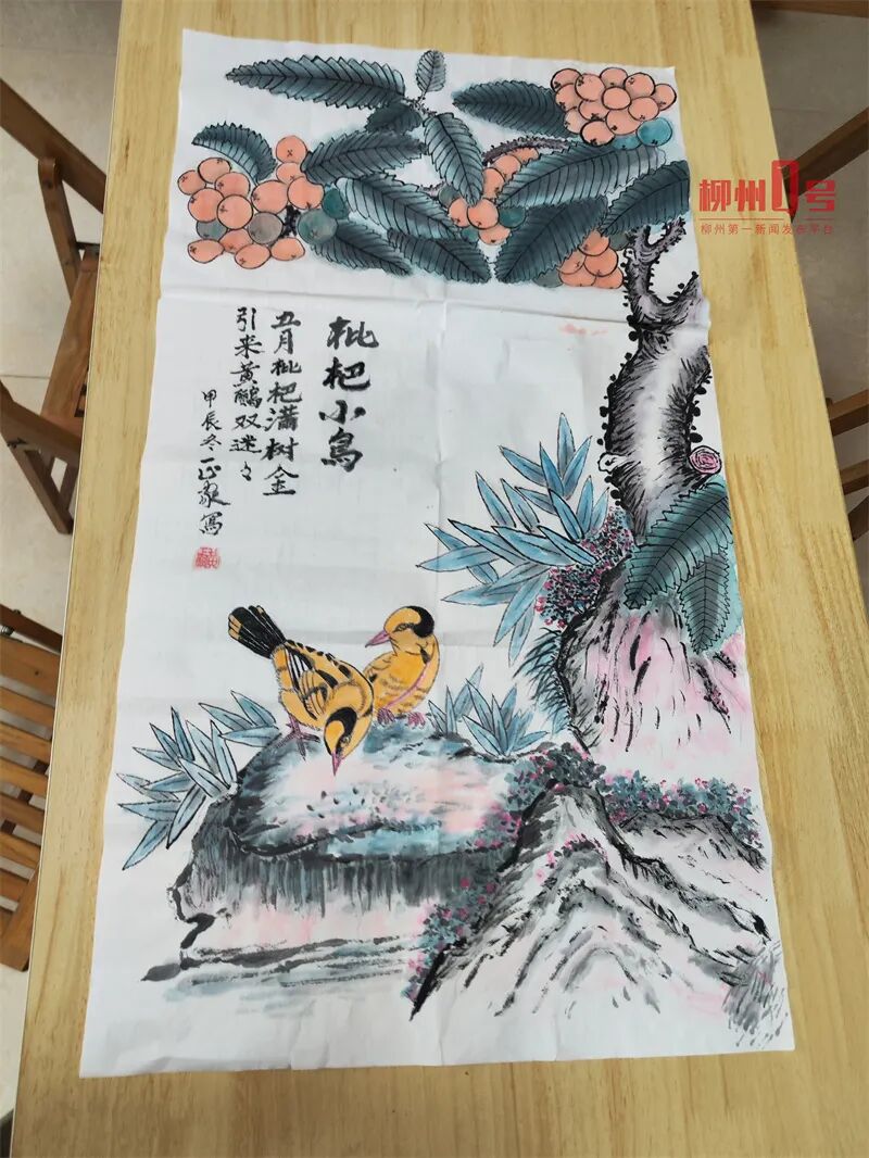 这幅“枇杷黄鹂图”太暖了!柳州94岁退役老兵画笔下藏祝福!你看懂了吗